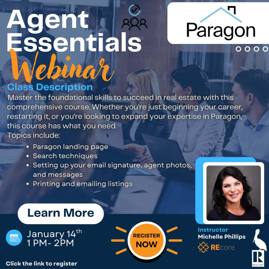 Paragon: Agent Essentials Description: Master the foundational skills to succeed in real estate with this comprehensive course. Whether you’re just beginning your career, restarting it, or you’re looking to expand your expertise in Paragon, this course has what you need. Topics include: Paragon landing page Search techniques Setting up your email signature, agent photos, and messages Printing and emailing listingsImages